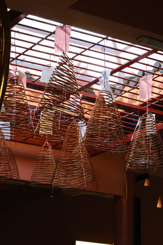 Không gian tĩnh tại: Hòa cùng nhịp sống thiền môn, khu vực Trung đường thường là nơi Phật tử và du khách có thể quan sát thấy những dãy nhang vòng (nhang khoanh) được treo cao trên trần nhà, làn khói trầm bảng lảng tạo nên một bầu không khí trầm mặc, thanh tao.
